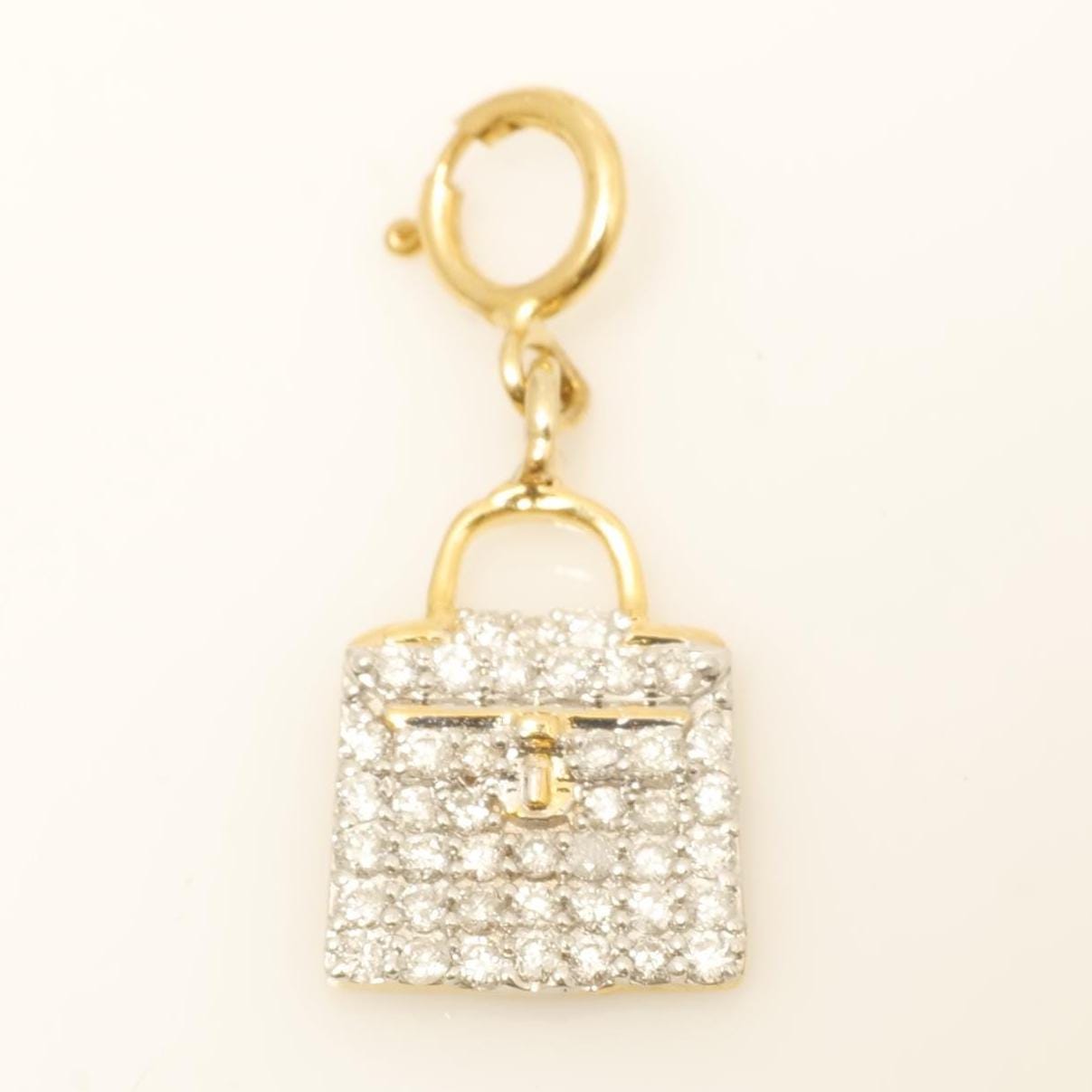 Handbag Diamond Charm, 14k Solid Gold, Natural Diamonds, Two Tone Layering Pendant, Minimal Bag Necklace, Ready To Ship, Certified Jewelry