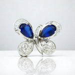 Blue Sapphire Butterfly Diamond Ring, 14K Solid Gold, Natural Diamonds, Insect Jewelry, Gemstone Cocktail Ring, Ready To Ship