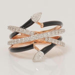 Criss Cross Diamond Ring, 14k Solid Gold, Pear Natural Diamonds, Black Enamel Ring, Bold Statement Band, Cocktail Ring, Gift For Her
