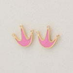 Crown Diamond Kids Stud Earrings, 14k Solid Gold, Natural Diamonds, Minimalist Pink Enamel Jewelry, Gift for toddlers/girls, Ready To Ship