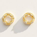 - Diamond Earrings with Halo Setting, Halo Circular Tube in 14K Solid Gold, Natural Diamonds, Ready To Ship, Women's Day Gift