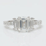 IGI Certified Emerald Cut Three Stone Lab Grown Diamond Ring: 14k Solid Gold Promise Wedding Ring