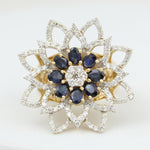 - Flower Natural Diamond & Blue Sapphire Ring: 14K Solid Gold Gemstone Cocktail Ring, Certified Jewelry