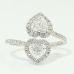 - Double Heart Diamond Bypass Ring, 14k Solid Gold, Natural Diamonds, Two Stone Open Wrap Ring, Statement Love Cuff Ring, Certified Jewelry