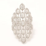 14k Solid Gold Marquise Natural Diamond Lattice Ring: Wide Halo Cocktail Jewellery, Certified Jewelry