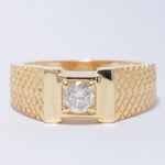 - Men's Round Solitaire Natural Diamond Ring: 14k Solid Gold Textured Shank Jewellery, Certified Jewelry