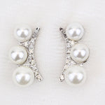 Triple Pearl Climber Diamond Earrings, 14k Solid Gold, Natural Diamonds, Curved Studs, Everyday Minimalistic Earrings