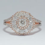 - Flower Solitaire Cluster Diamond Ring, 14K Solid Gold, Natural Diamonds, Double Halo Engagement Ring, Statement Bridal Jewelry, Gift For Her