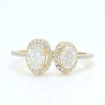- Twin Oval Halo Diamond Ring, 14k Solid Gold, Natural Diamonds, Statement Ring, Bridal Wedding Ring, Cocktail Ring, Certified Jewelry