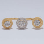 - Cluster Diamond Open Cuff Ring, 14k Solid Gold, Natural Diamonds, Halo Two Tone Ring, Three Finger Cocktail Ring, Gift for Her