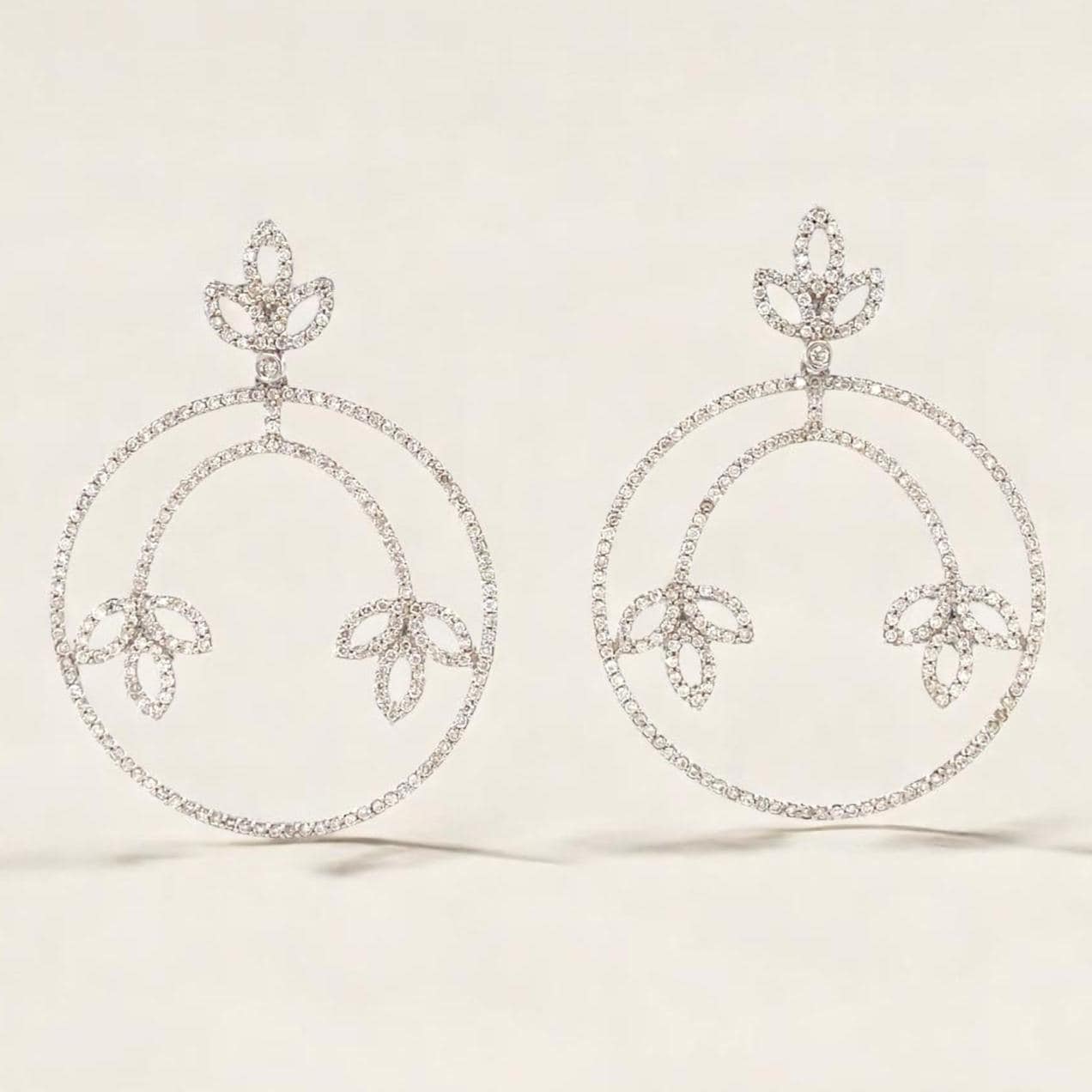 Floral Hoop Natural Diamond Dangle Earrings: 14k Solid Gold Circle Drop Jewelry, HRD Certified, Ready To Ship