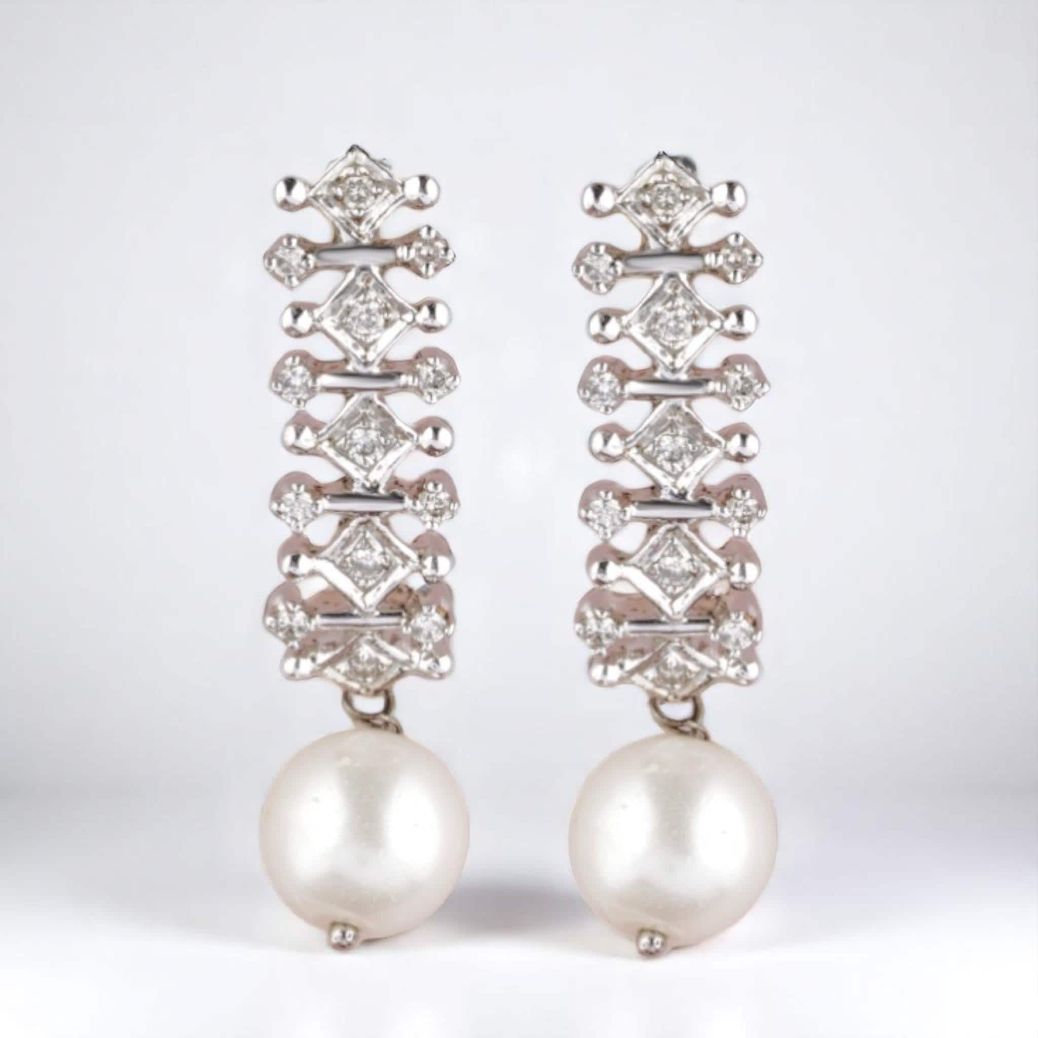 Pearl Drop Diamond Earrings, 14K Solid Gold, Natural Diamonds, Detachable Drops, Everyday Bridal Jewlery, Evening Drop Earrings