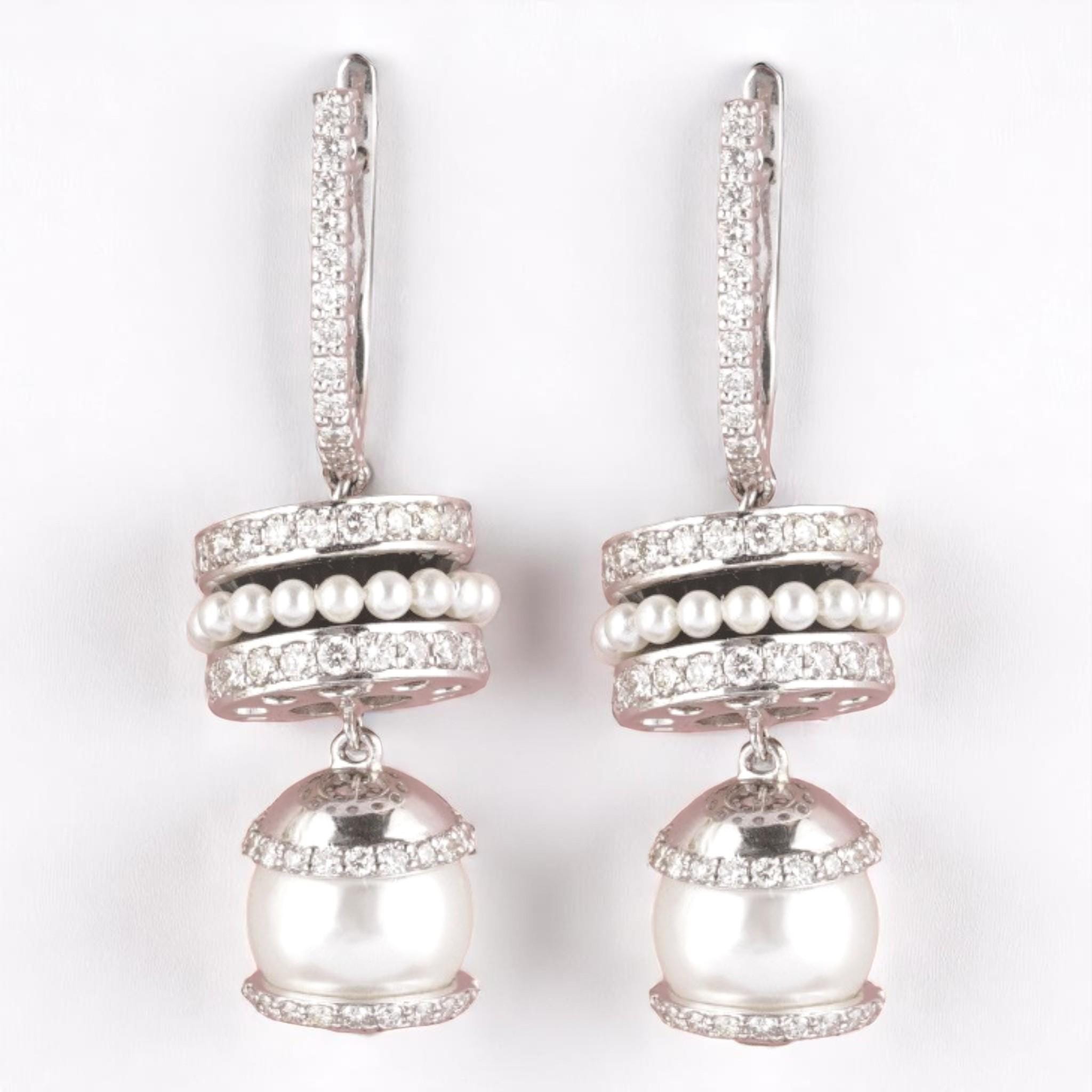 Pearl Drop Diamond Dangle Earrings, 14K Solid Gold, Natural Diamonds, Bridal Jhumka Earrings, Statement Cocktail Earrings
