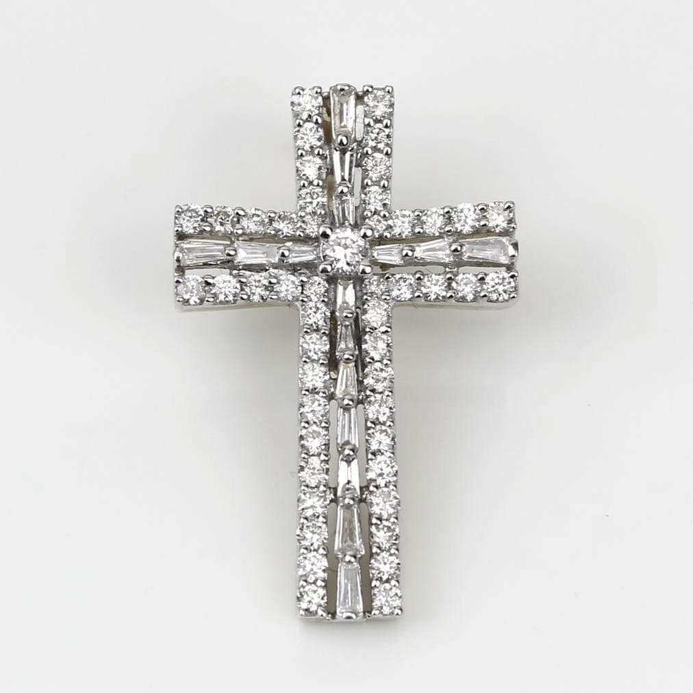 Diamond Cross Pendant, 14k Solid Gold, Natural Diamonds, Baguette Necklace With Adjustable Chain, Communion Religious Jewelry, Faith Pendant