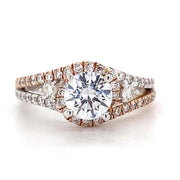 Round Solitaire Diamond Ring, 14K Solid Gold Engagement Ring, Dual Tone, Split Shank, Natural Diamonds, Gift For Her