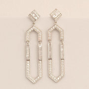 Hexagonal Dangle Diamond Earrings, 14k Solid Gold, Natural Diamonds, Geometric Statement Earrings, Bridal Drop Long Earrings