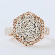 Hexagonal Halo Diamond Ring, 14k Solid Gold, Natural Diamonds, Cocktail Cluster Ring, Statement Bridal Jewelry, Geometric Ring, Gift For Her