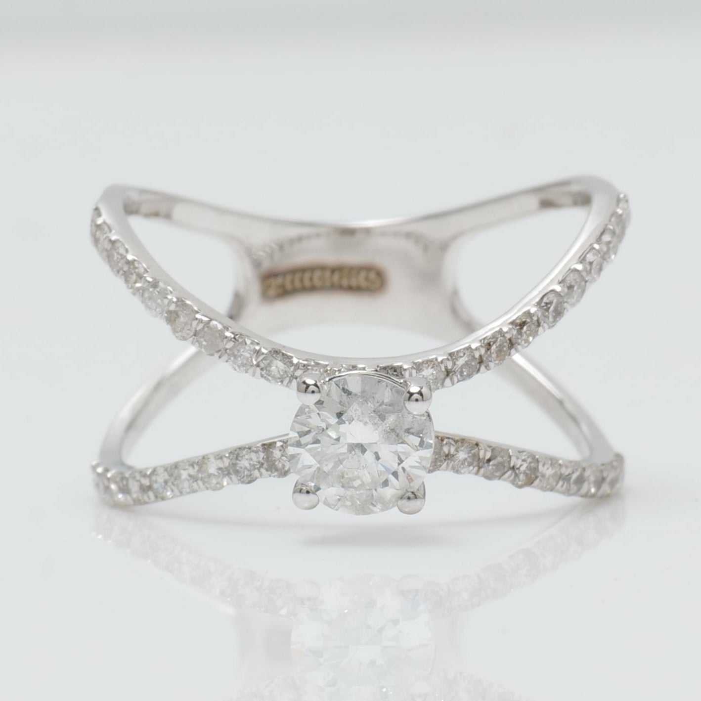 Leaf Cluster Baguette Natural Diamond Ring: 14k Solid Gold Open Bypass Ring, Certified Jewelry