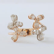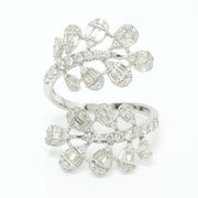 Floral Natural Diamond Bypass Ring: 14k Solid Gold Baguette Flowers Open Ring, Certified Jewelry