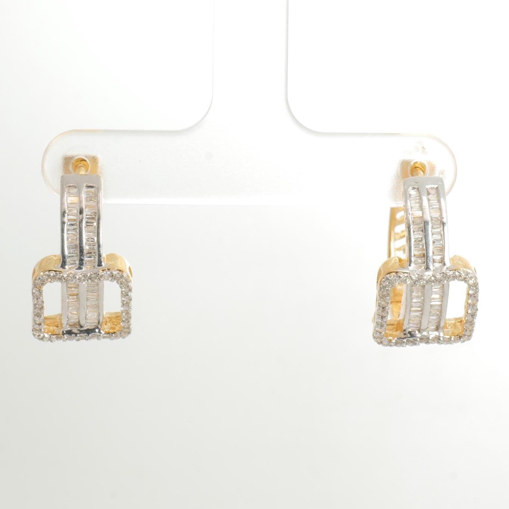 Two-Tone Baguette Diamond Hoop Earrings: 14k Gold Huggies, IGI Certified