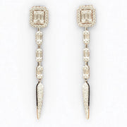 Geometric Halo Spike Diamond Earrings, 14k Solid Gold, Natural Diamond, Cluster Pave Dangle Drop, Modern Statement Jewelry, Cocktail Earring