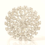 This floral dome diamond ring features a dramatic cluster sphere design composed of numerous natural round diamonds arranged in a radiating floral pattern. Each diamond is prong-set in 14k solid gold, creating a captivating dome silhouette that rises gracefully above the finger. Ideal as a statement ring for grand events or a striking addition to fine jewelry collections, it offers bold artistry and expert craftsmanship. Ideal for cocktail parties, festive events, or as a standout gift.