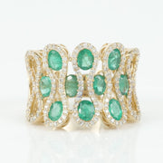 Emerald Wave Diamond Band Ring, 14k Solid Gold, Natural Diamonds, Multi Row Gemstone Ring, Cocktail Statement Band, Certified Jewelry