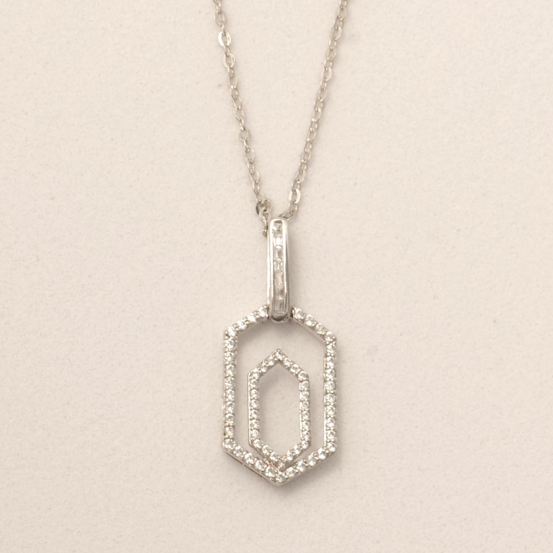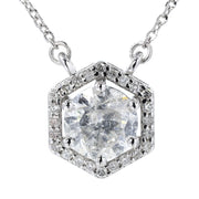 Hexagonal Diamond Pendant Necklace, 14k Solid Gold, Natural Diamonds, Double Halo Statement Pendant, Geometric Stacking Chain Jewelry
