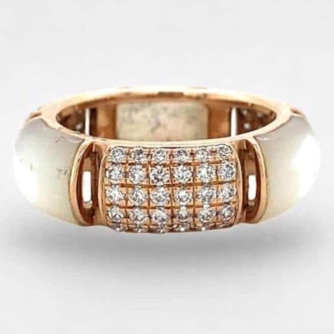 Mother of Pearl Diamond Ring, 14k Solid Gold, Natural Diamond, Cocktail Cluster Band, Statement Ring, Wide Dome Everyday Stack, Gift For Her
