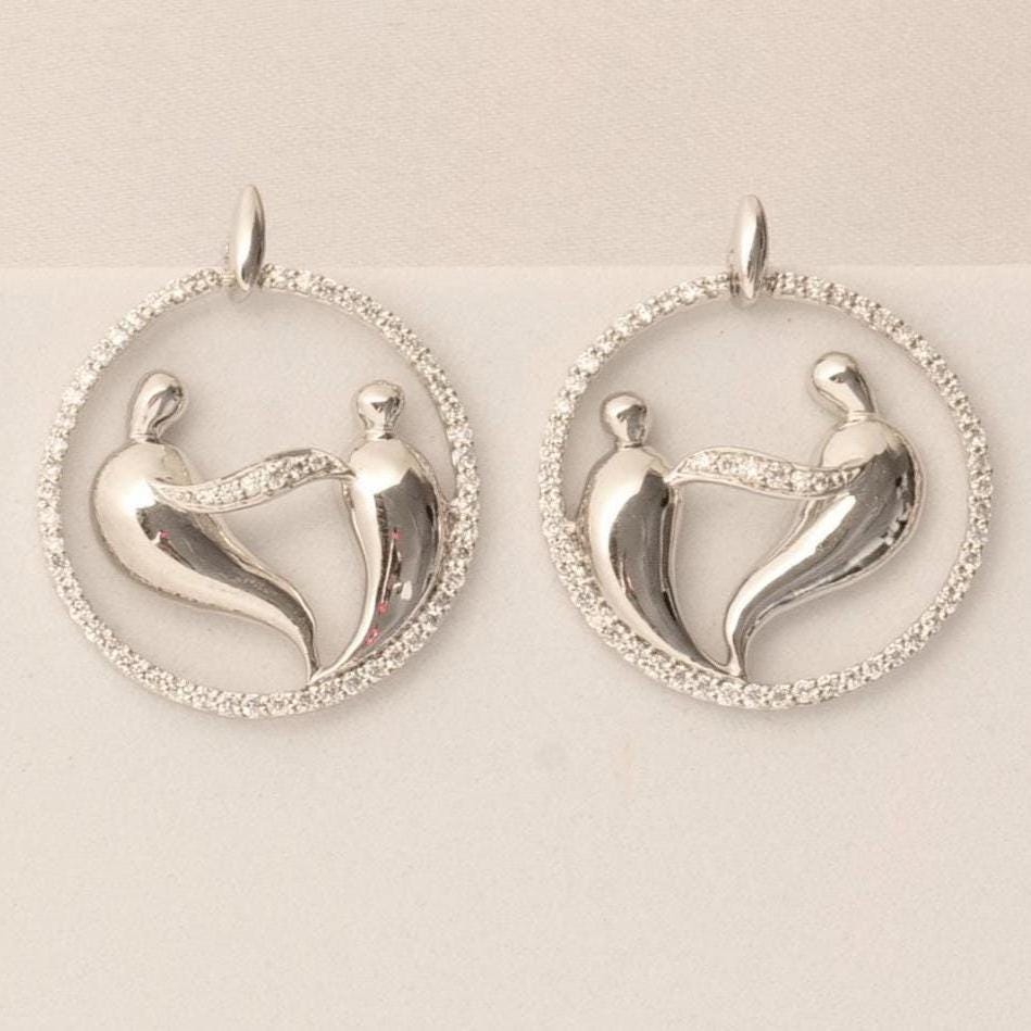 Mother Child Stud Earrings, 14k Solid Gold, Natural Diamonds, Eternity Bond Statement Earrings, Circle Geometric Jewelry