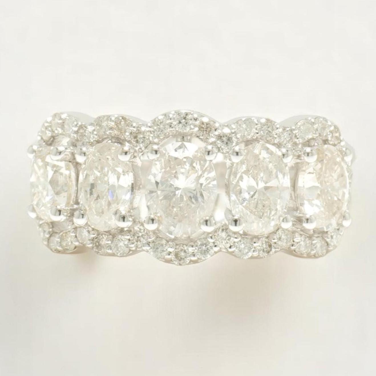 Oval Halo Diamond Band Ring, 14k Solid Gold, Natural Diamonds, Eternity Wedding Band, Statement Bridal Ring, Ready To Ship, IGI Certified