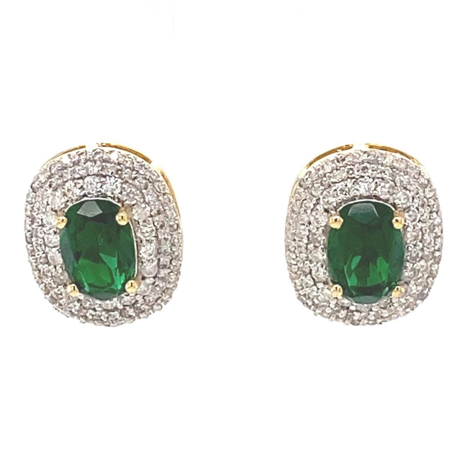 Oval Green Gemstone Halo Diamond Earrings