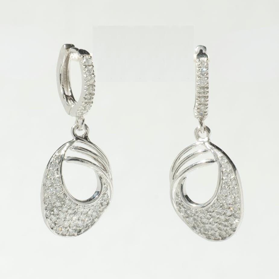 Oval Diamond Earrings, 14k Solid Gold, Natural Diamonds, Geometric Chevron Pavé Hoops, Minimalist Statement Jewelry, Wedding Jewelry