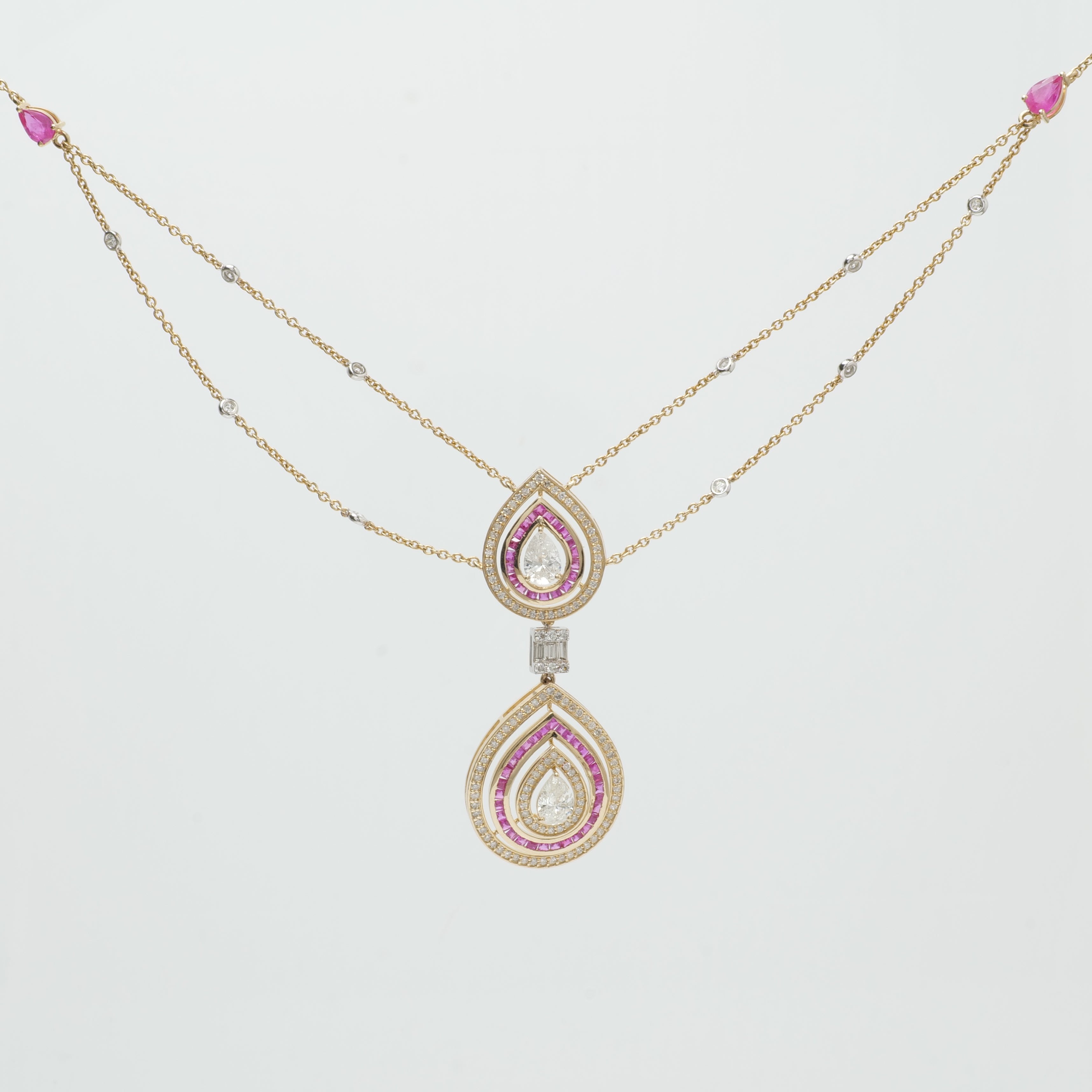 Pear Diamond Ruby Stacking Necklace