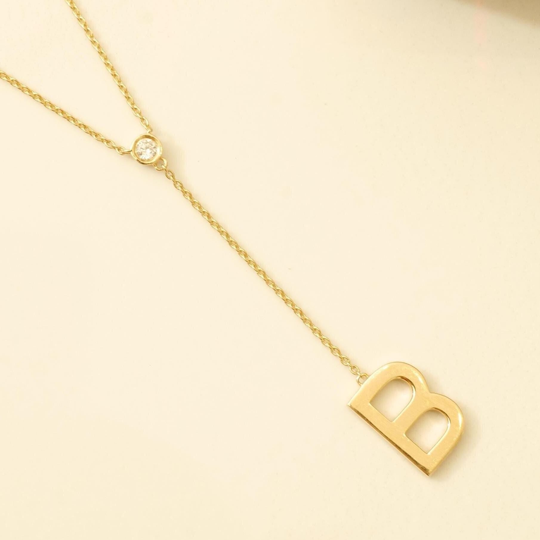 Personalized Initial Lariat Necklace, 14k Solid Gold Diamond Letter, Natural Diamonds, Custom Name Initial Jewelry, Minimalist