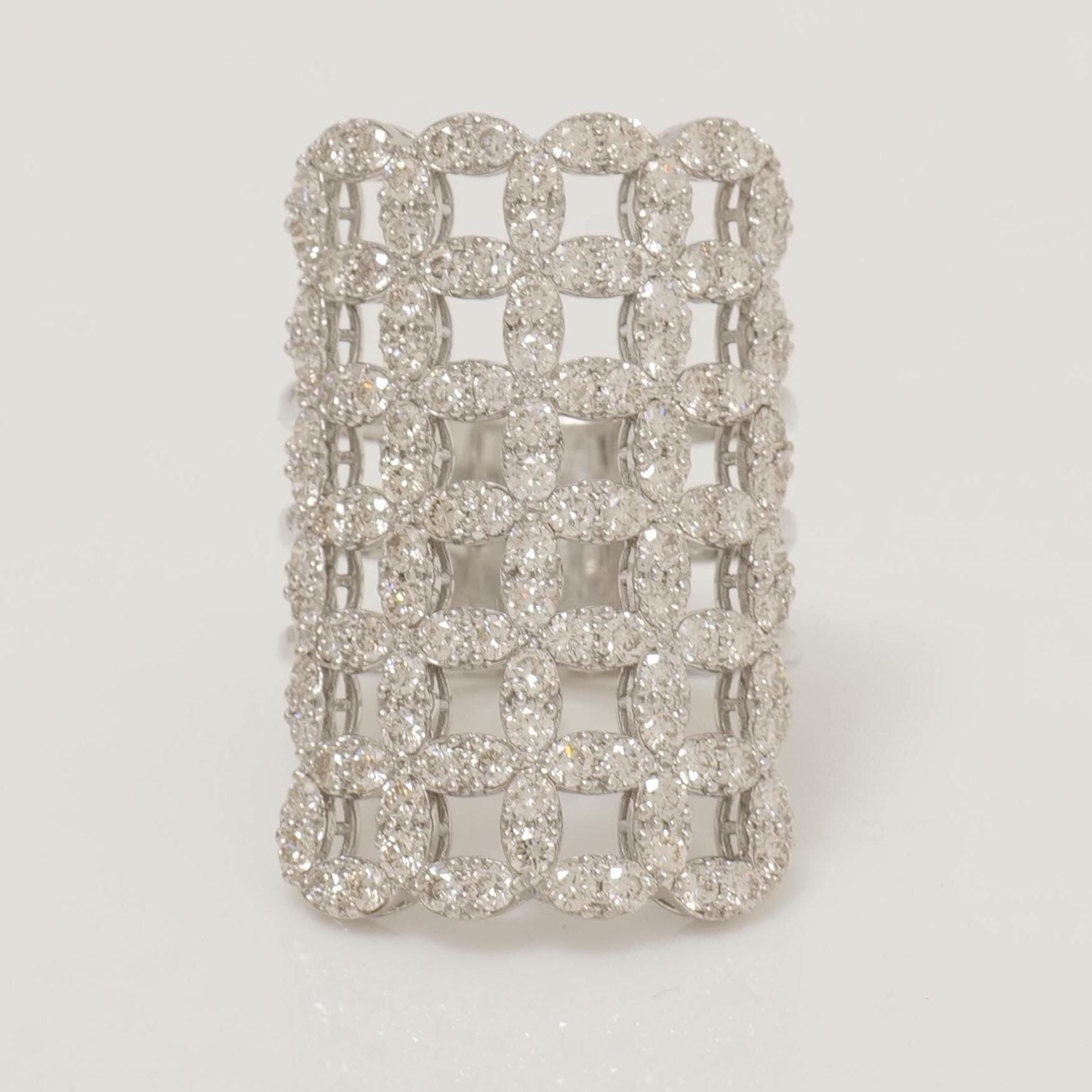 Check Design Cocktail Ring, 14k Solid Gold, Natural Diamonds, Patterned Gold Ring, Triple Shank Statement Ring, Ready To Ship, IGI Certified
