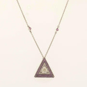 Pink Sapphire Triangle Diamond Necklace, 14k Solid Gold, Natural Diamond, Geometric Gemstone Stackable Chain, Certified Jewelry