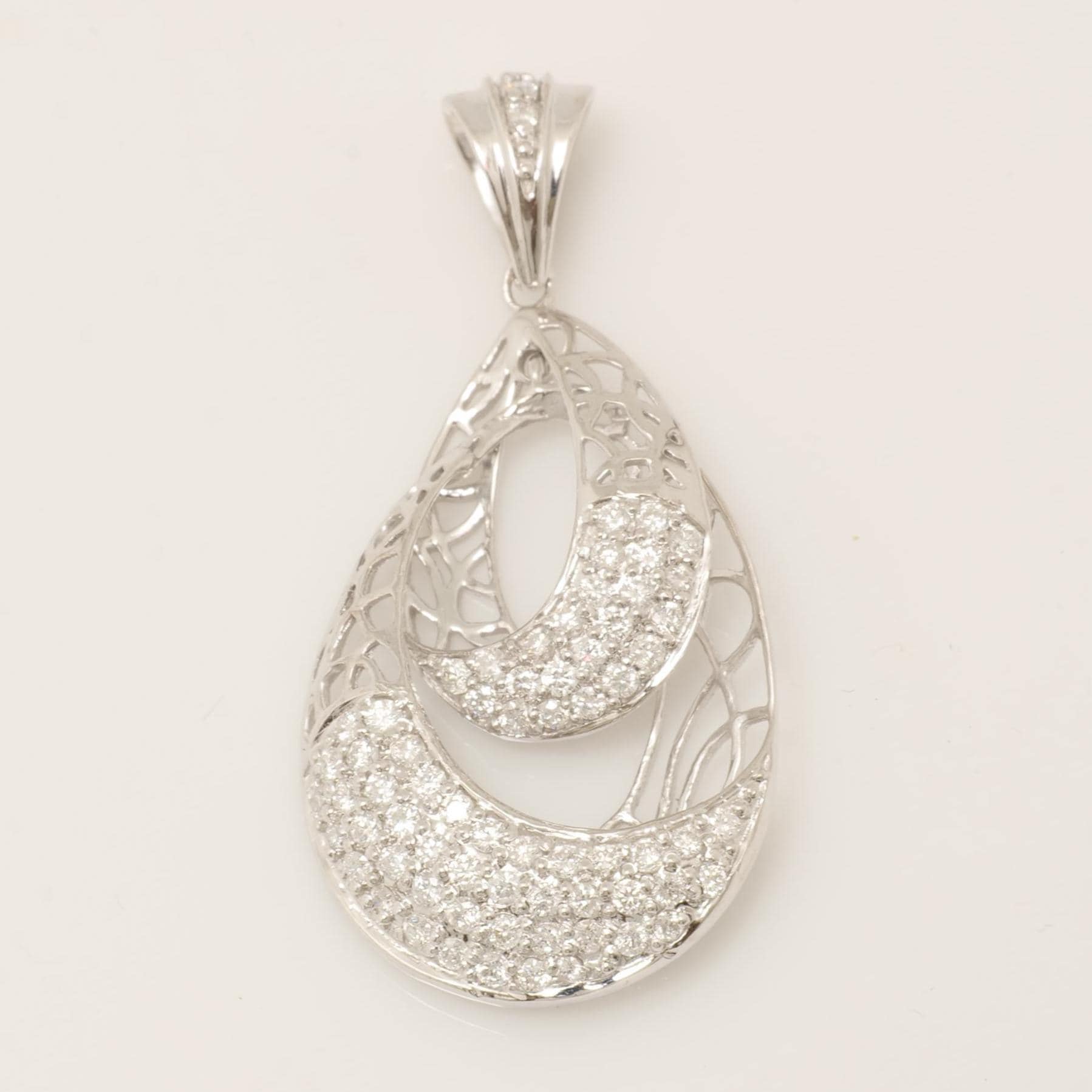 Teardrop Diamond Pendant Necklace, 14k Solid Gold, Natural Diamond, Pave Statement Jewelry, Filigree Necklace, Cocktail Pendant