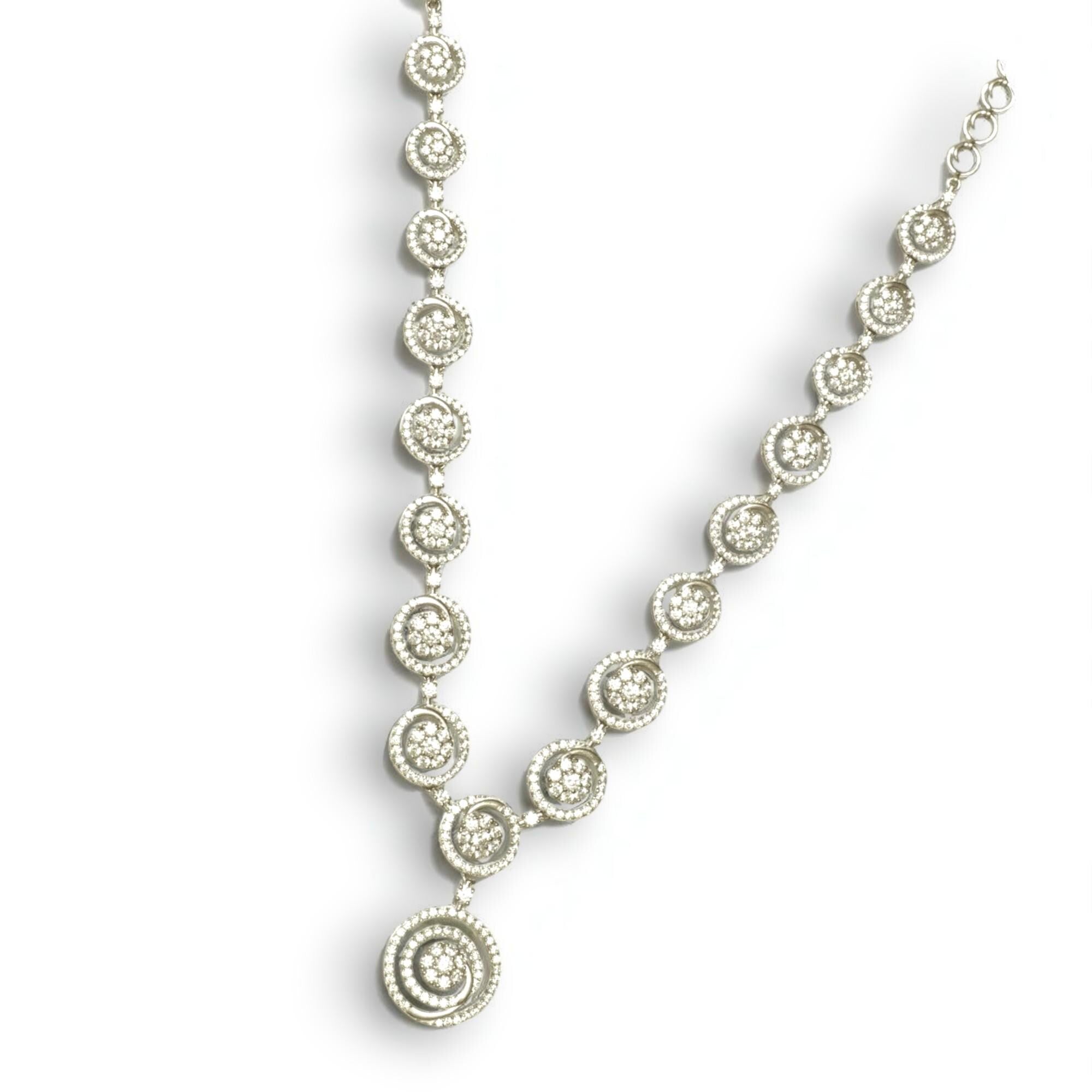Swirl Diamond Necklace, 14k Solid Gold, Natural Diamonds, Filigree Wedding Jewelry, Statement Bridal Jewelry, Circular Drop Necklace