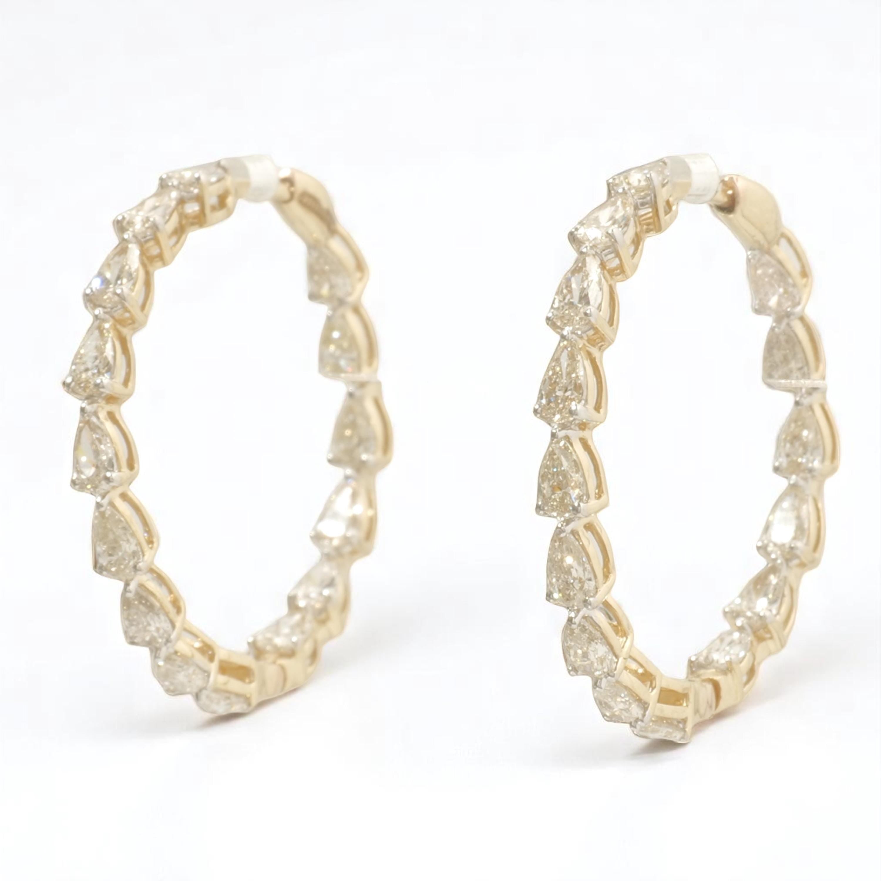 Teardrop Diamond Hoop Earrings, 14K Solid Gold, Pear Natural Diamonds, Inside Out Hoops, Everyday Statement Jewelry