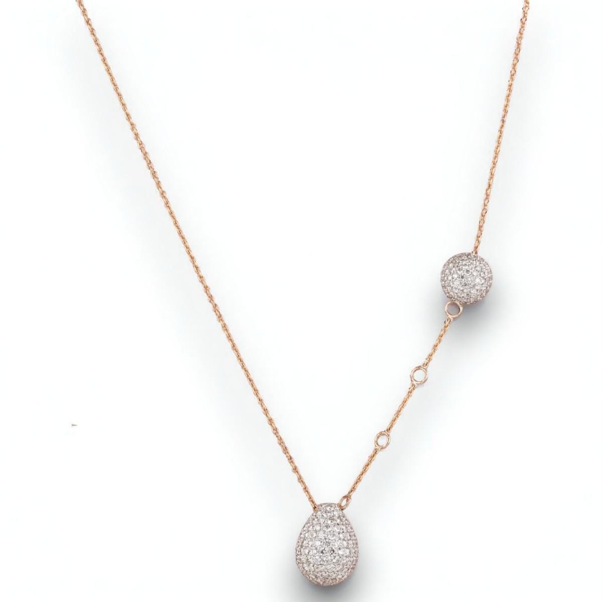 Teardrop Ball Diamond Necklace, 14k Solid Gold, Natural Diamonds, Minimalistic Charm Necklace, Asymmetrical Layering Chain