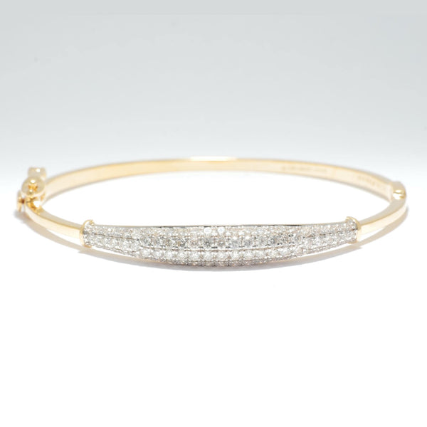 - Pavé Natural Diamond Bar Bangle Bracelet: 14k Solid Gold Sleek Minimalistic Jewellery, Certified Jewelry