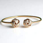 Love Knots Diamond Bracelet, 14K Solid Gold, Natural Diamonds, Open Cuff Statement Jewelry, Stackable Bracelet, Minimalistic Jewelry
