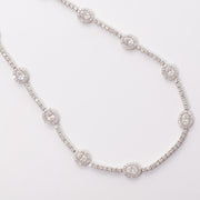 Oval Link Halo Diamond Necklace, 14k Solid Gold, Natural Diamond, Circle Station Chain Jewelry, Statement Necklace, Bridal Wedding Necklace