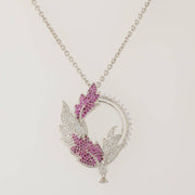 Natural Pear Diamond Halo Ruby Bridal Necklace: 14k Solid Gold Double Drop Gemstone Jewellery, Certified Jewelry
