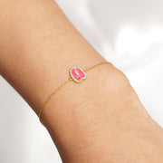 Personalized Initial Halo Diamond Enamel Bracelet, 14k Solid Gold Chain, Natural Diamonds, Stacking Custom Jewelry, Minimalist Gift For Her