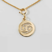 Cancer Horoscope Birth Sign Charm, 14k Solid Gold, Natural Diamonds, Zodiac Constellation Everyday Jewelry, Astrology Gift