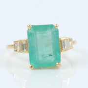 Emerald Cut Natural Emerald Diamond Ring, 14k Solid Gold, Natural Diamonds, Halo Baguette Gemstone Ring, Certified Jewelry