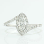 Marquise Halo Natural Diamond Bypass Ring: 14k Solid Gold Engagement Statement Band Jewellery, Certified Jewelry