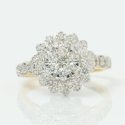 Floral Halo Cluster Natural Diamond Ring: 14k Solid Gold Engagement Proposal Jewellery, Certified Jewelry